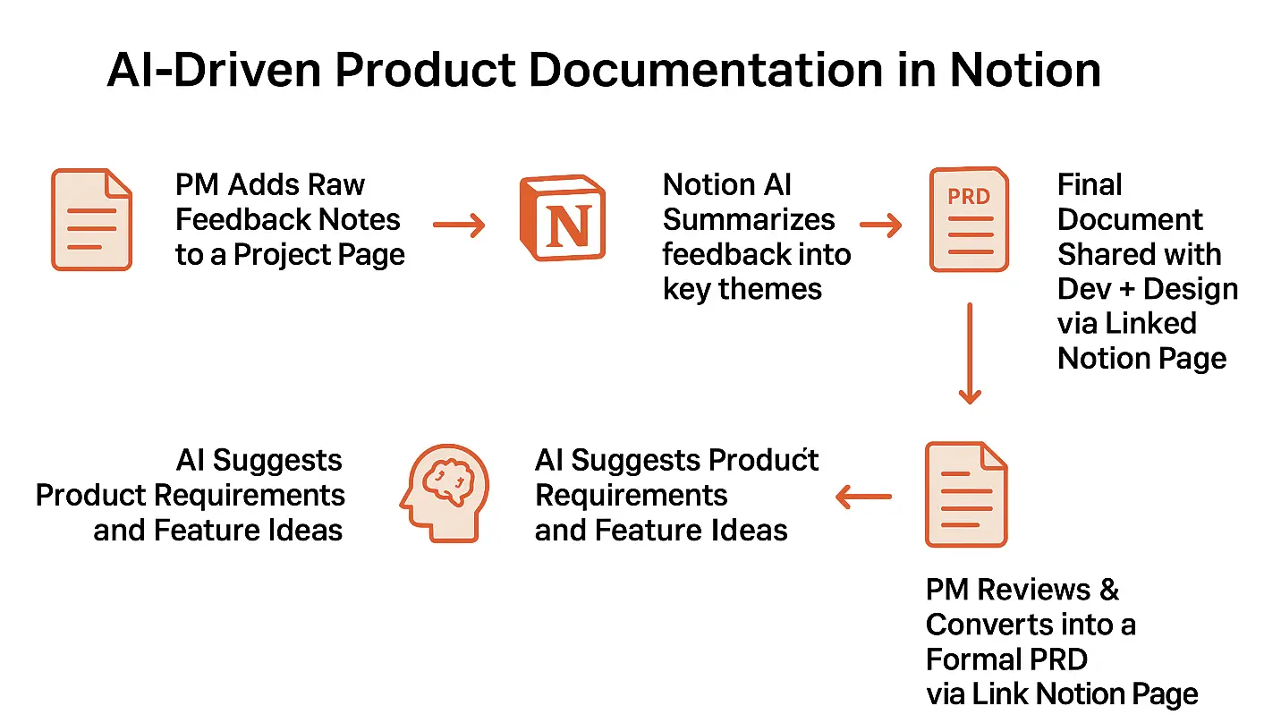 Zapier의 제품 매니저(PM)는 다음과 같은 흐름으로 Notion AI를 활용합니다.